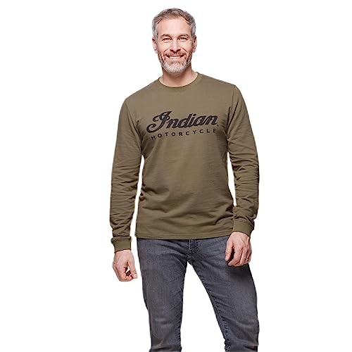 Indian Motorcycle Men's Loopback Script Long Sleeve T-Shirt, Khaki